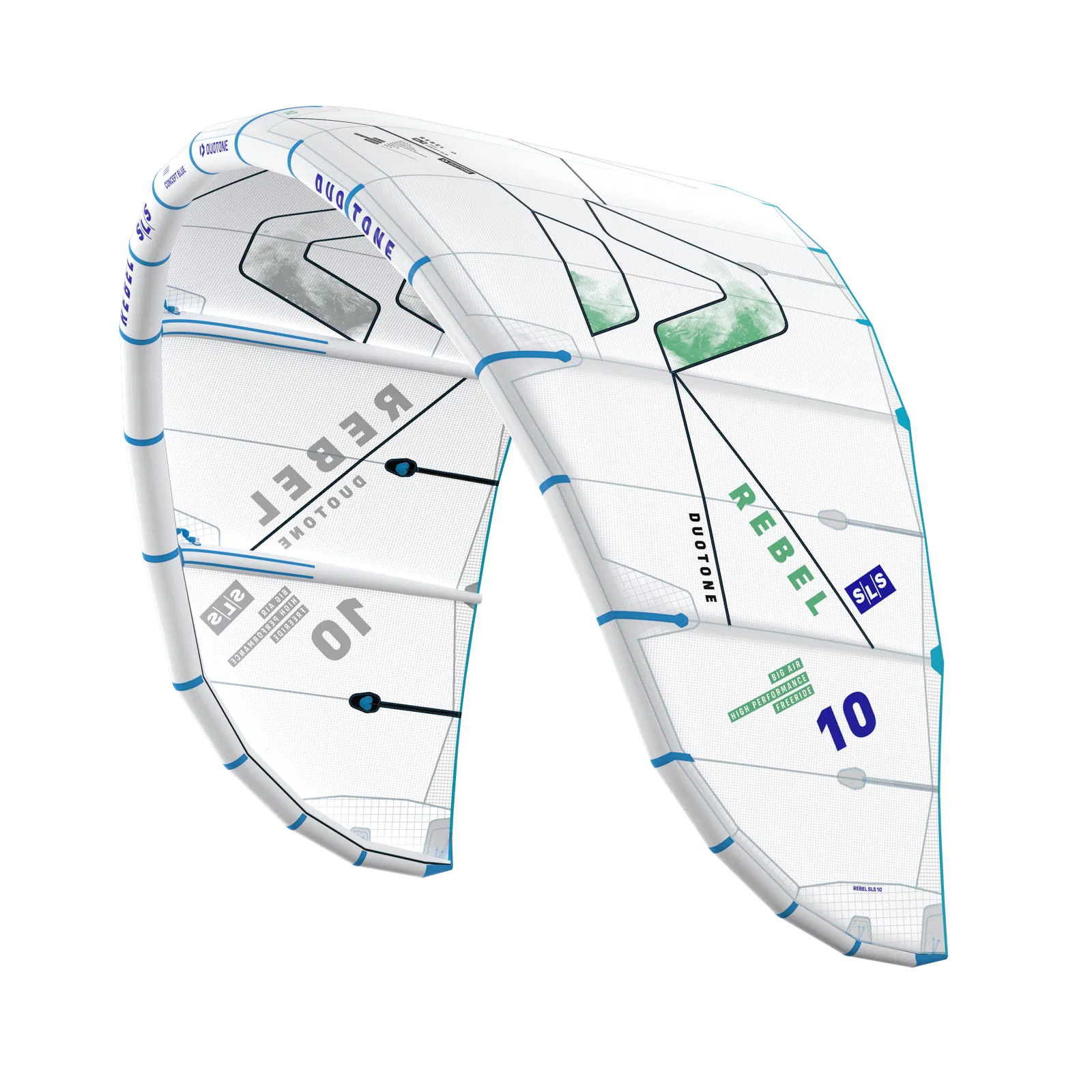 The legendary Duotone Rebel SLS, the ultimate high-performance kite designed for freeride and big air enthusiasts. Built with advanced Penta TX and Trinity TX materials, the Rebel SLS offers maximum hangtime and controlled power, setting the stage for powerful and stylish tricks on the water. The Rebel SLS is engineered for those who crave huge hangtimes. With its remarkable ability to facilitate powerful jumps, this kite allows riders to perform their best tricks with confidence. Its “sheet and go” design makes for easy takeoffs, empowering you to launch into the sky with minimal effort. Experience powerful loops executed with full control, enabling you to navigate the air like never before. One of the standout features of the Rebel SLS is its direct bar feedback, which enhances precision and confidence during both ascent and descent. This is complemented by explosive lift capabilities, giving riders vertical takeoffs and extended airtime that elevate the performance standard in the big air segment. Key improvements have been made to enhance vertical lift without compromising hangtime. By shortening the chord length, the Rebel SLS presents a sleeker, more aerodynamic profile that facilitates efficient upward propulsion during jumps. The removal of pulleys from the front bridle simplifies the kite's setup, leading to a more responsive feel on the bar. This adjustment not only improves direct feedback from the bar but also enhances the rider’s ability to maintain precision control during dynamic maneuvers. With a decreased leading edge sweep angle, the kite can now climb faster to the edge of the wind window, particularly during kite loops. This optimization of airflow over the kite enables rapid ascents, making it easier for riders to execute quicker loops with explosive vertical boosts. The overall structural adjustments made to the Rebel SLS significantly enhance vertical acceleration, allowing for more dynamic jumps and aerial maneuvers. Additionally, modifications to the bridle system enhance agility and intuitiveness in high-performance riding scenarios, ensuring that every steering input translates seamlessly into kite response. This results in a more intuitive flying experience, allowing riders to tackle complex tricks with increased confidence. The Duotone Rebel SLS is your ticket to the skies. With its combination of powerful lift, responsive handling, and advanced technology, this kite is designed for riders who demand the very best in performance and style. Elevate your kiteboarding experience and reach your full potential with the Rebel SLS 2026.